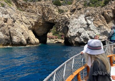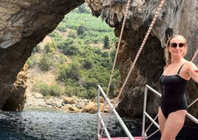 Tym razem zabieramy Was na wschód. Do miasta słynącego z licznych plantacji bananów,klifów, błękitnych lagun, pirackich jaskiń i ruin antycznych miast, ukrytych wysoko w górach, czyli do GAZIPASA. W drodze do miasta zatrzymamy się na krótki postój nad zatoką Aytap, gdzie z góry podziwiać będziecie ruiny antycznego miasta-portu IOTOPE. Naszym stateczkiem wypływamy z portu jachtów „Gold Marina”. Płyniemy wzdłuż wybrzeża „błękitnych lagun”, podziwiając panoramę na góry Taurus unoszące się nad samym Morzem Śródziemnym. Ruszamy morskim szlakiem, gdzie morze zachwyci Was przejrzystą, błękitną wodą, zobaczycie piaszczyste, naturalne plaże, mijać będziecie klify i pirackie jaskinie. Podczas tego rejsu zatrzymujemy się w kilku ciekawych miejscach. Pierwsze takie miejce, to Macar plaża – tutaj macie czas wolny na pływanie i plażowanie, następnie krótki postój na robienie zdjęć przy Pirackej Jaskini Kochanków, a kolejna atrakcja, to Zatoka Królewska, czyli ” Delik Deniz”. Po wpłynięciu do Zatoki Błękitnego Raju macie czas ok. 1 godziny na spożycie smacznego obiadku i pływanie. Ostatni przystanek, to Zatoka Błękitnej Laguny, tu zanurzacie się w tej cudownie błękitnej wodzie już po raz ostatni na tej wycieczce.