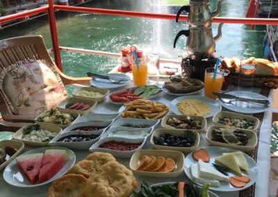 A teraz coś specjalnie dla Was! Turecki bazar w Alanyi w połączeniu z tradycyjnym tureckim śniadaniem w restauracji na rzece Dimcay. Aby udać się na bazarowe zakupy, trzeba najpierw nabrać sił. A tradycyjne tureckie śniadanko napewno Wam tych sił dostarczy 🙂
