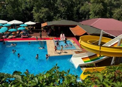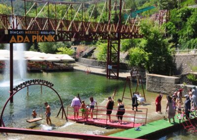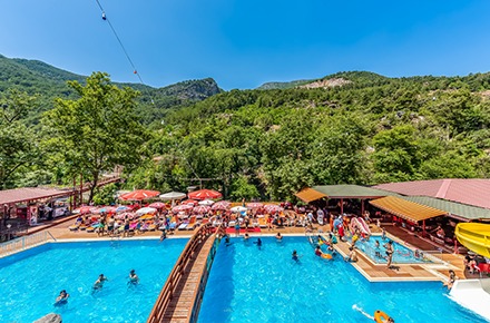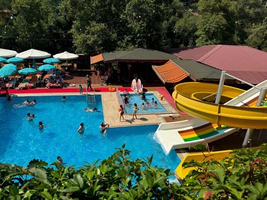 Naszą wycieczkę rozpoczniemy wjazdem grupą jeepobusów na słynny taras widokowy „I LOVE ALANYA”. Znajduje się on na wysokości ok.500 m n.p.m., z którego podziwiać będziemy przepiękny widok na całą Alanye i okolice. Po uczcie dla Waszych oczu ruszamy na ucztę dla ciała 🙂 Jedziemy do Dimcay, do restauracji na rzece, gdzie nie tylko zjecie śniadanie, ale również możecie wykąpać się w rześkiej wodzie potoku górskiego lub popływać w basenie. Przysmaki tureckie jakie tam spożyjemy, to między innymi melemen (jajecznica na warzywach), sigara borek (cienkie zawijaski z ciasta z nadzieniem), lavasz (cienkie placki z mąki) i inne smakołyki :). Rzecz jasna do popicia turecki cay (turecka herbata) podawana tu w demliku (tureckim dwupiętrowym czajniku).